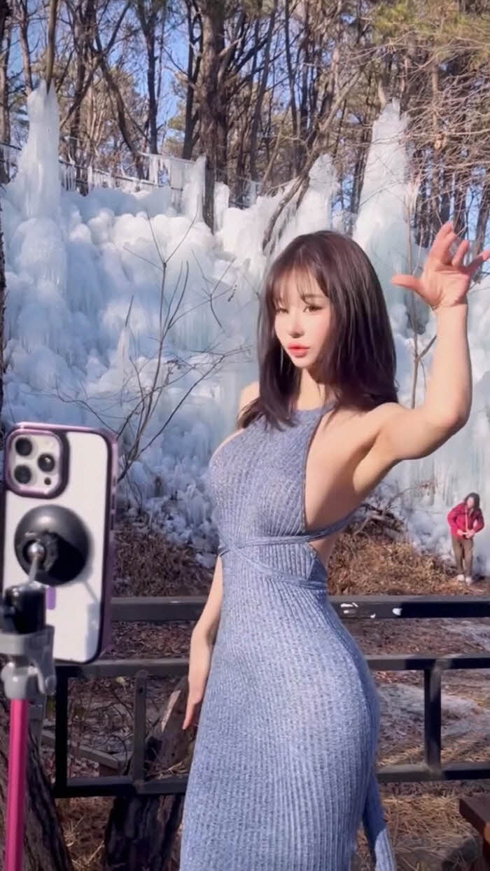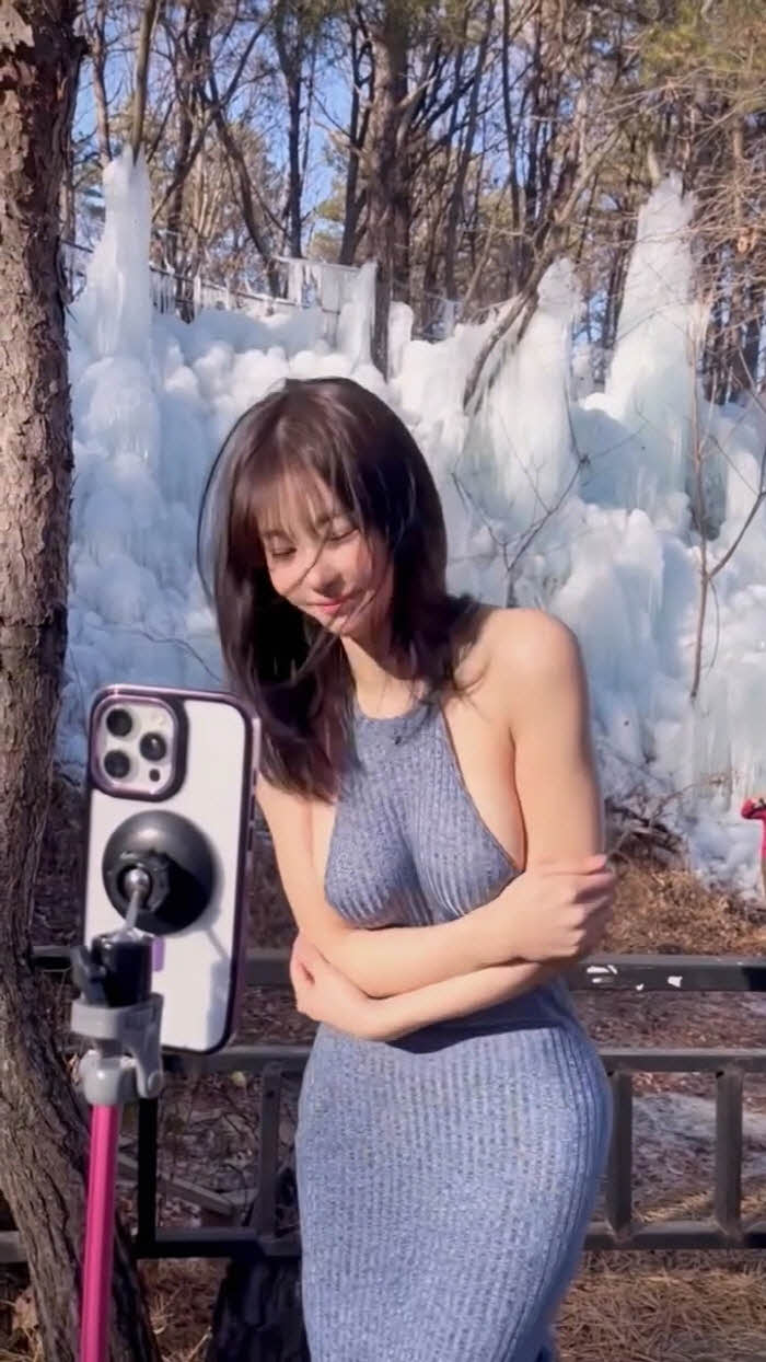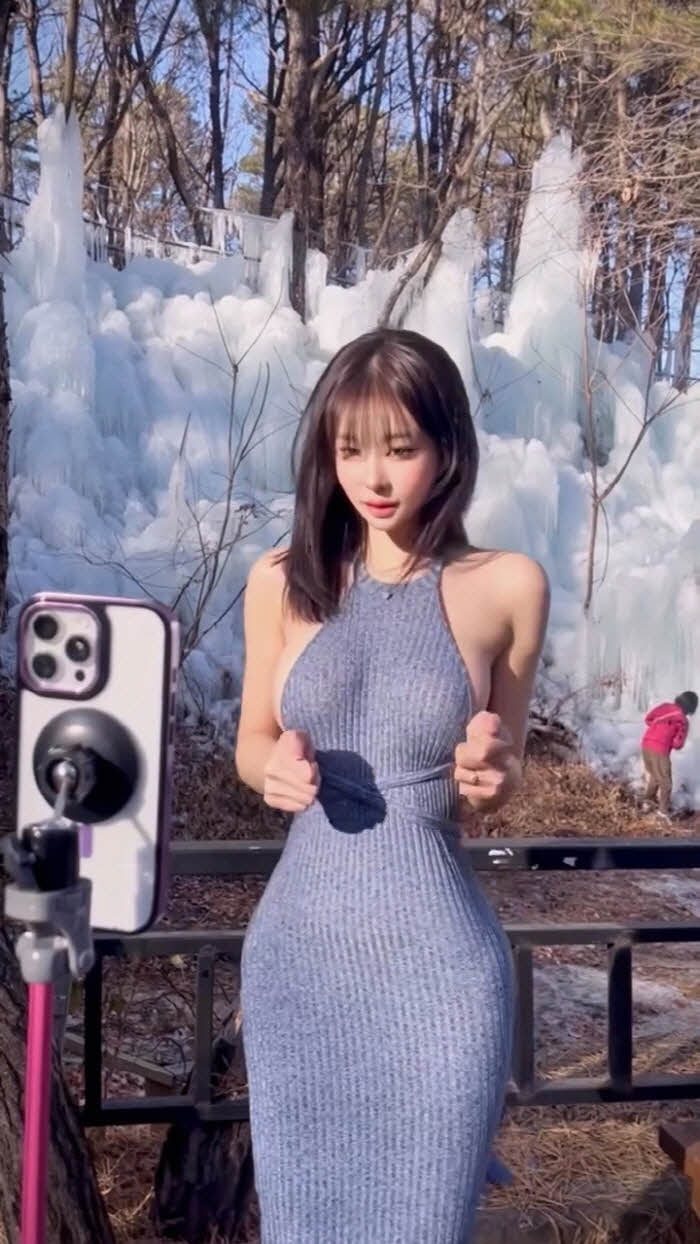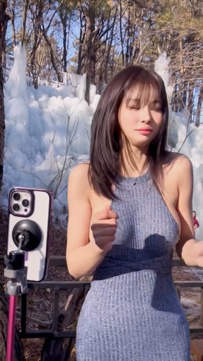 빙벽앞 패치만 붙이고 영상찍다 너무 추워하는 갓세희 (영상)