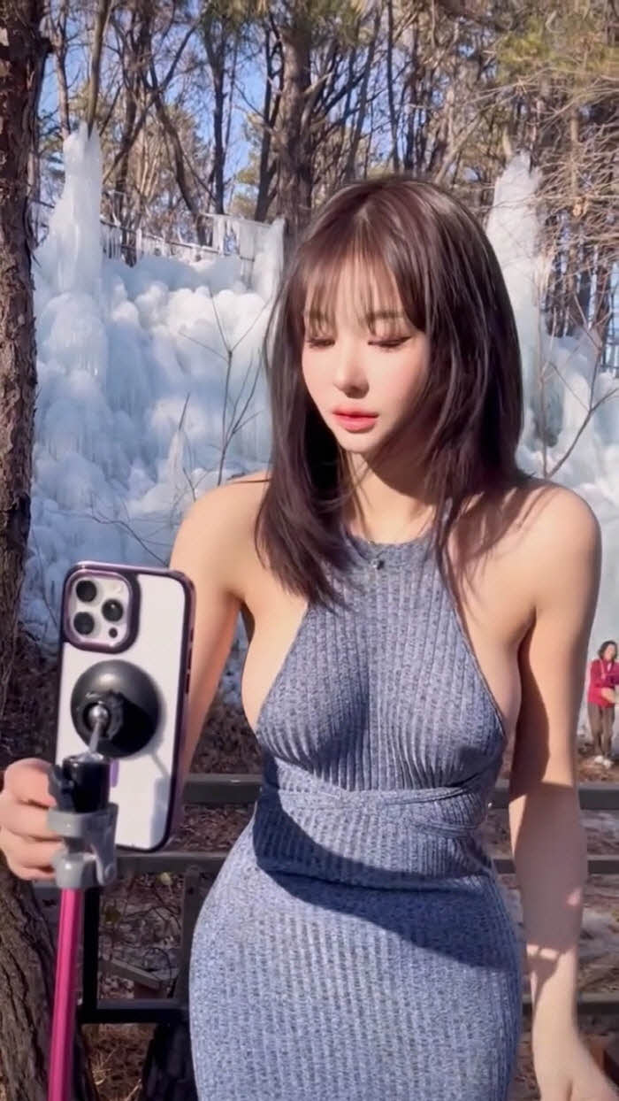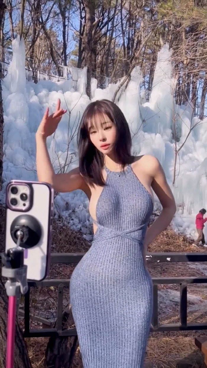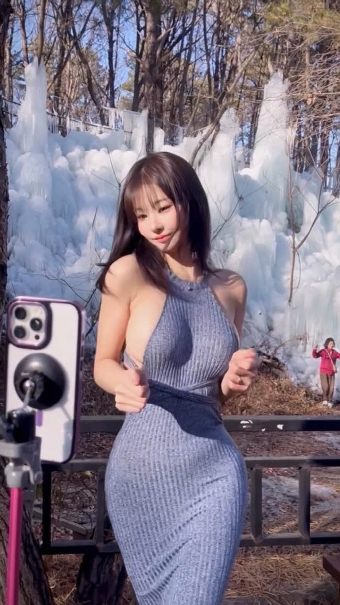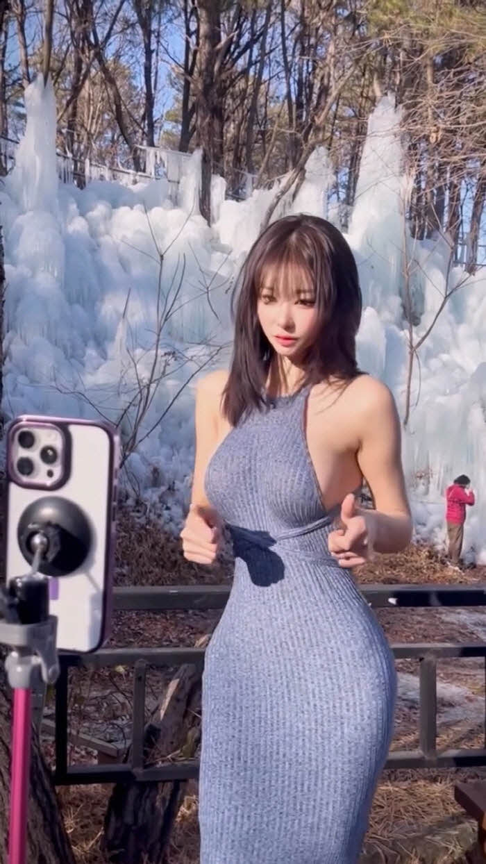 빙벽앞 패치만 붙이고 영상찍다 너무 추워하는 갓세희 (영상)